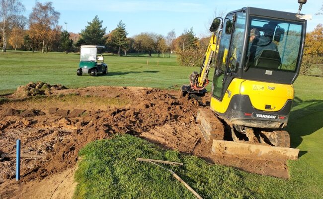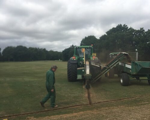 There are two aspect to the drainage program here at Hagley GC. The ‘secondary’ processes such as mole ploughing, earth quaking and terra spiking are all designed to de-compact, aerate and make our clay soil more permeable. We have all seen the positive effects of these processes last year and the mole ploughing in particular will be applied on the back at the start of this season.