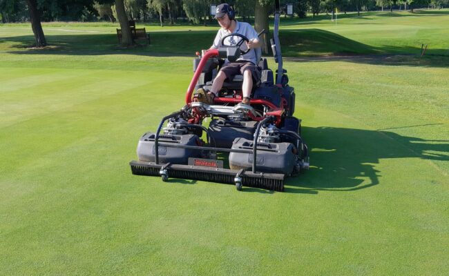 Investments have been made to ensure the resources for proper course maintenance have been available to the green keeping team. The two Ventrac mowers that many of you will have seen on the course by now have proven to be excellent. The design features of these machines mean they are able to operate in ground conditions that previous machines could not. They also have an interchangeable front end allowing them to be used for a variety of maintenance tasks, from mowing, to leaf blowing and power brushing. As the gallery shows there has also been investment in hand machinery for mowing tees and greens, a new digger for construction/renovation, the terraspiker for aeration work, as well as refurbishment of already owned greens mowers and fairway mowers.