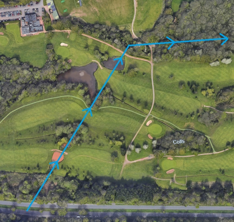 Following the blue arrows is to follow the route water runs over and under through the water courses across from the Clent Hills. This leads it from the 8th, into the 4th, under the 4th fairway, into the 18th hazard, through into the 10th and out to the ravine on the left of the 10th hole. These areas were identified as our priority for drainage and water management in last summers survey. The Greens Committee will be sharing more details with you on related works, beginning with the clearance of trees between the 4/8th holes and the left side of the 4th in the coming weeks.