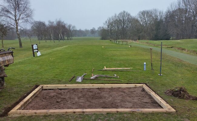 It is our desire to have a ‘winter’ course measured in the Spring, so we are able to use it for qualifying purposes. In view of this, it was requested that all winter teeing areas be replaced or refurbished. This work started late autumn, and I believe all but a small number (I do not know exact number) have either been finished or in construction. I am aware of new/refurbed tee’s on, 1, 2, 3, 4, 5, 6, 9, 10, 11, 12, 13, 16, 17 and 18, with 8 and 14 currently in construction. The rest will be completed by the desired time. I will also state that the work that is being carried out is to a very high level and these tee’s made to last, as shown below.