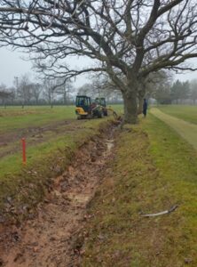 We have conducted some secondary drainage projects (Mole Ploughing) on certain parts of the course and on the 14th Green, these initial trials have proven to be successful, but the condition of the ground is critical for this work to be undertaken. The ground needs to be soft enough underneath for the ‘mole’ to form the channel, while the surface needs to be firm enough for the tractor not to tear up the fairways. I understand that Brian has been looking at a slightly larger ‘mole’ to make it more effective. We all need to be aware, if / when we are more extensive with this type of work, it will cause damage to the surface that will recover over time.