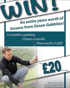 Contact Simon in the pro Shop or email simon@hagleygolfcoach.co.uk to find out more about his prize draw offer of 12 months coaching worth £1200 for just £20 entry!